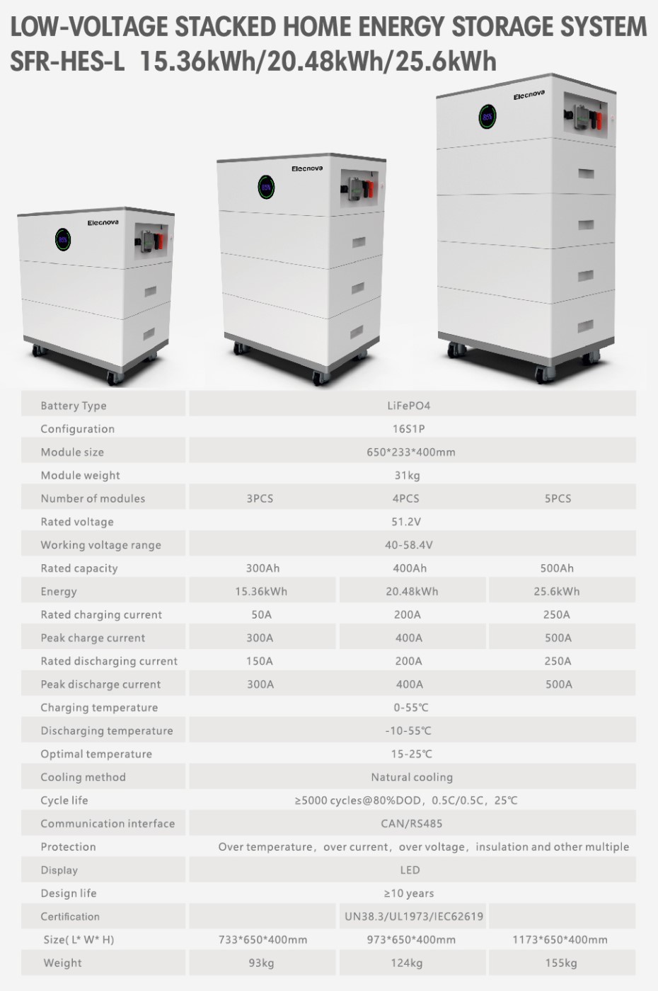 Với dòng sản phẩm này, Elecnova cung cấp 3 dải công suất 15.36kWh, 20.48kWh, 25.6kWh giúp đảm bảo nhu cầu cho gia đình cỡ vừa có khoảng 3 - 4 phòng ngủ.
