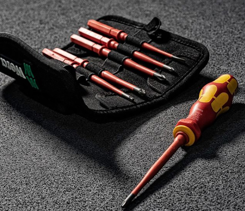 Tiếp theo, bạn lựa chọn tua vít cách điện. Tua vít cách điện thường có phần tay cầm bằng cao su hoặc nhựa. Phần tay cầm đóng vai trò như một lớp chắn giữa bạn và phần kim loại ở tua vít.