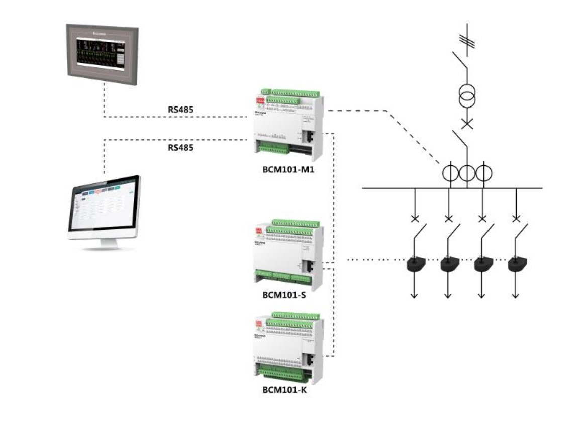 - Giám sát: Trạng thái của MCCB tổng và MCBs nhánh