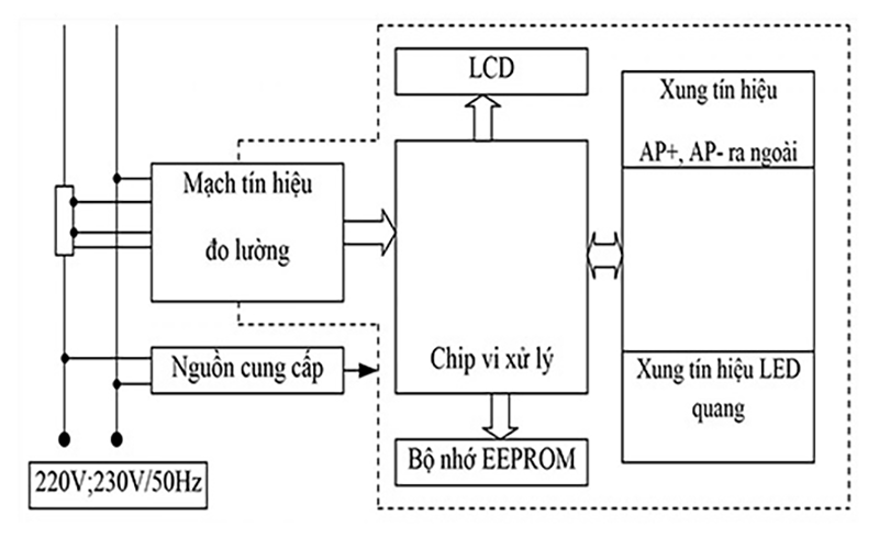 Sơ đồ nguyên lý hoạt động của công tơ điện tử 1 pha