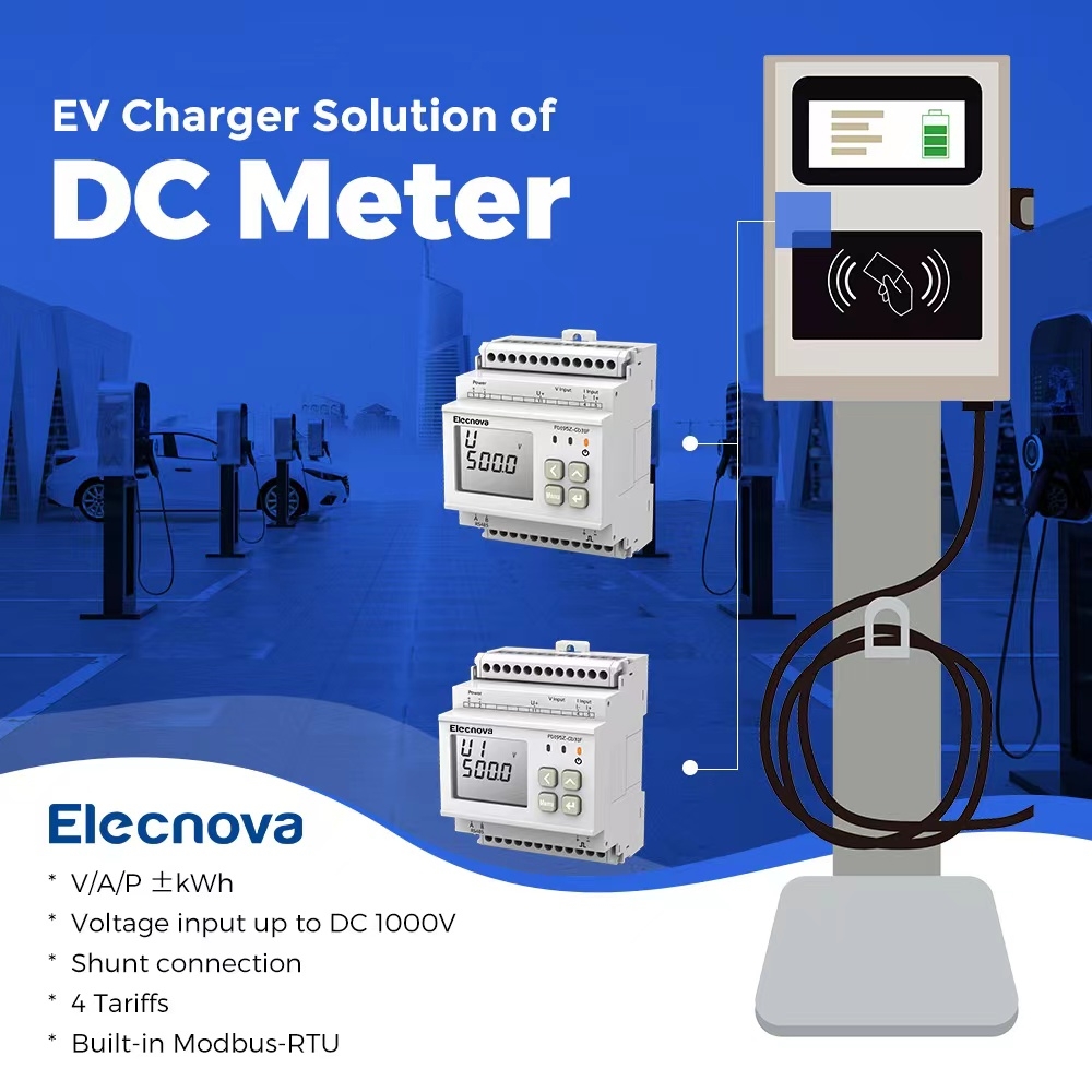 Đồng hồ đo điện DC Elecnova PD195Z-CD31F là thành phần cốt lõi của bộ sạc xe điện để đo điện năng sạc nhanh và lập hóa đơn tài chính.