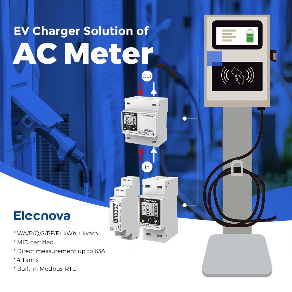 Đồng hồ đo điện AC Elecnova DDS1946 và DTS1946-4P là thành phần cốt lõi của ứng dụng sạc xe điện để đo điện năng sạc và lập hóa đơn tài chính.
