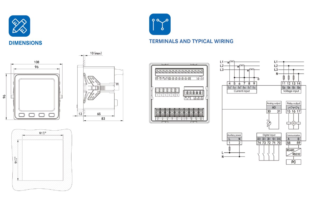 - LNF96 EY : Là dòng sản phẩm thông thường, đáp ứng nhu cầu của các nhà làm tủ bảng điện để theo dõi các thông số trong tủ