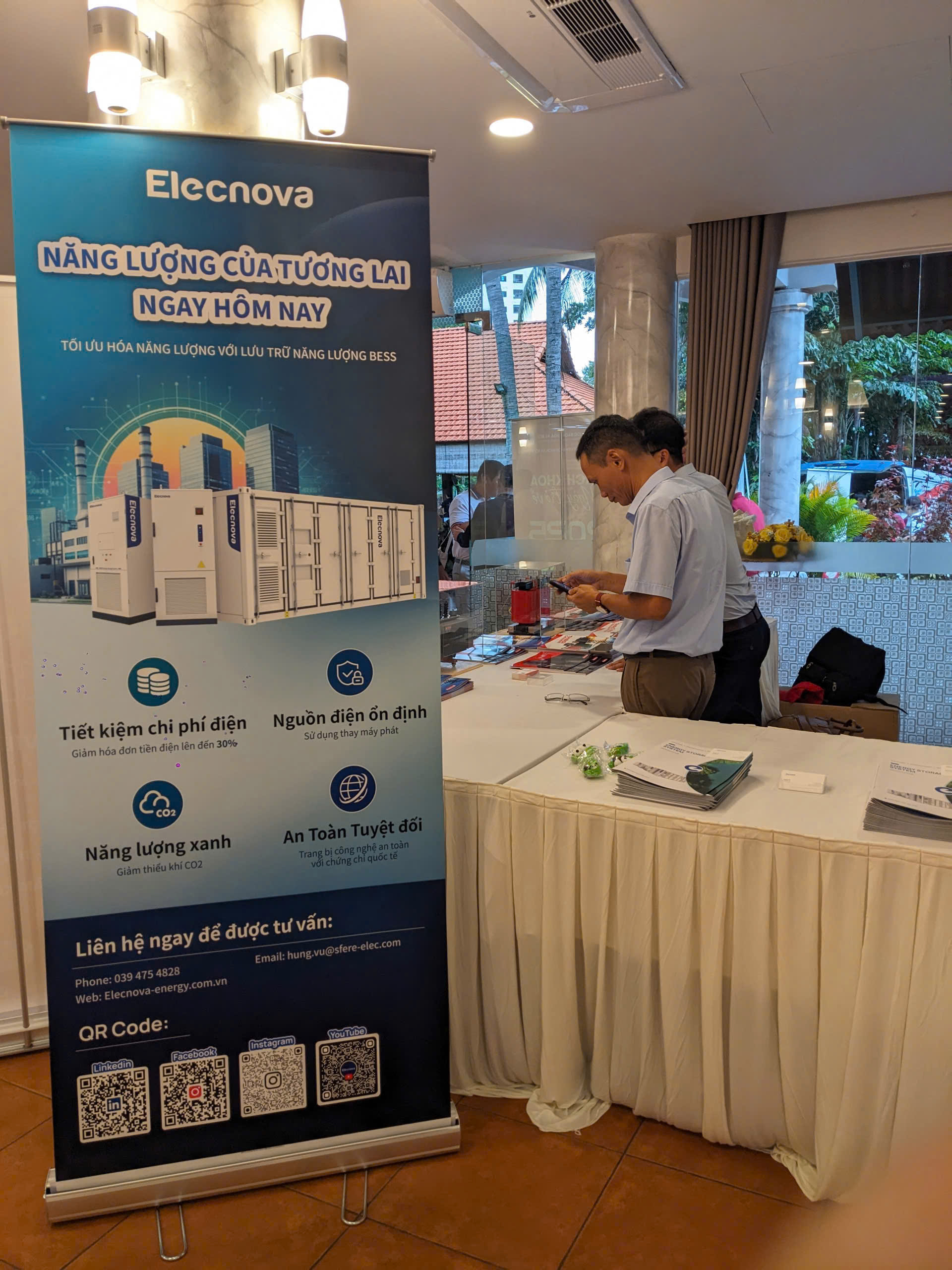Tại khu vực trưng bày, Elecnova đã nhận được sự quan tâm đặc biệt khi giới thiệu sâu hơn về các giải pháp Hệ thống Lưu trữ Năng lượng Pin (BESS - Battery Energy Storage System) tiên tiến.
