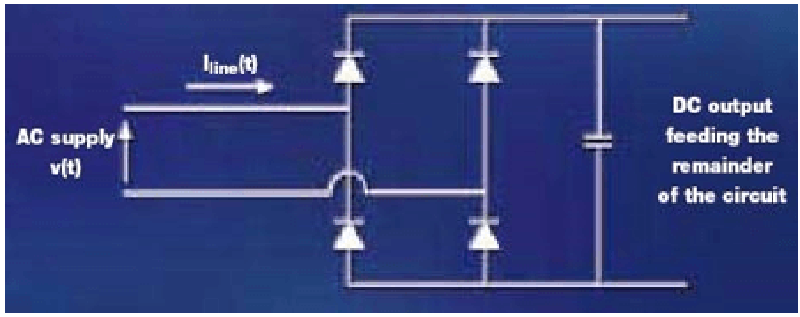 Bộ chỉnh lưu cầu 1 pha: Các thiết bị thường được cung cấp nguồn DC qua bộ cầu 1 pha Diode. Công suất của các thiết bị nhỏ, từ vài W đến vài kW. Hệ số méo dạng THD của dòng điện thường lớn hơn 100% .